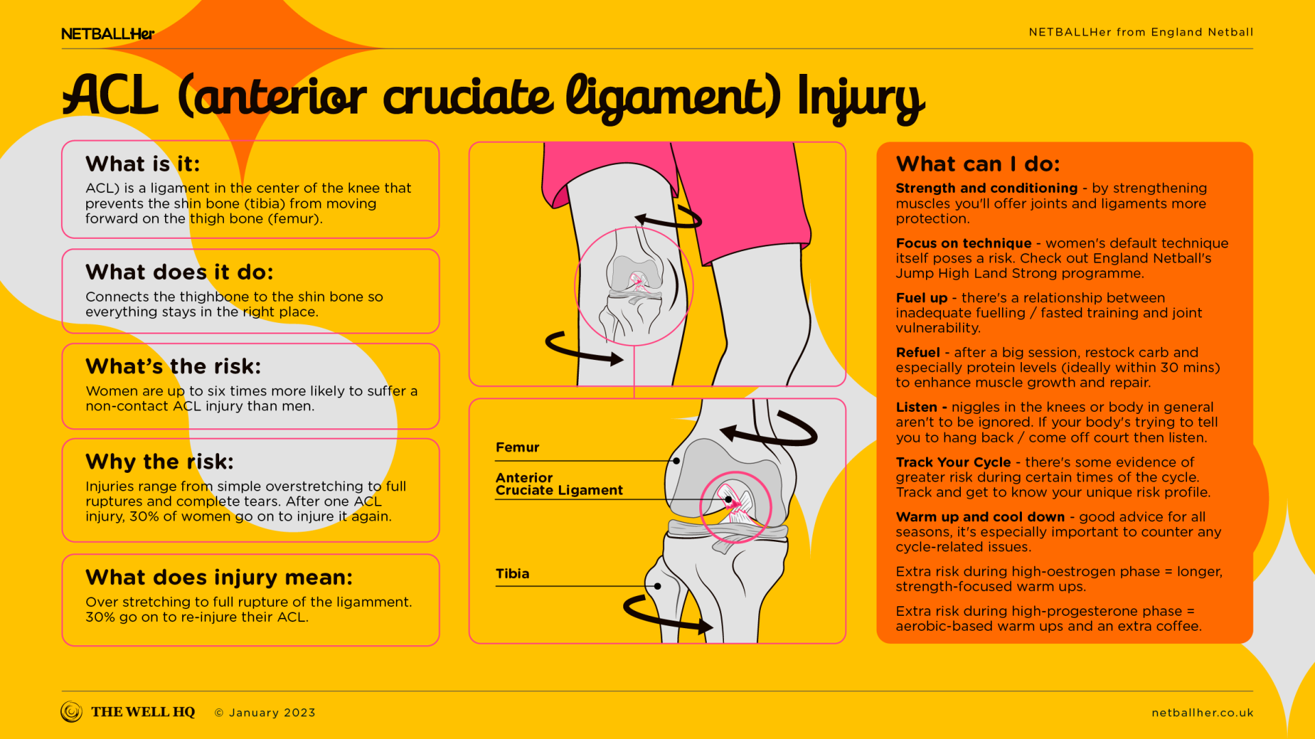Isobel was injured on court whilst playing for her regional team. At the time, the injury to her ACL ligament and meniscus was not picked up until weeks later when she was kicking a ball around with a friend.